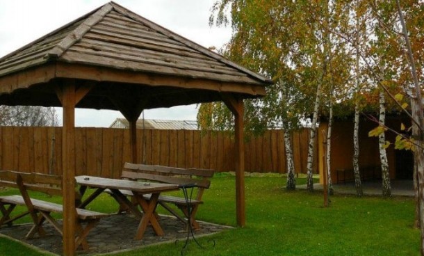 Budynek parterowy, w którym znajduje się olbrzyma sala klimatyzowana - mogąca pomieścić 250 gości - z podłogą do tańczenia. Wokół budynku rozpościera się duży obszar zieleni. Na terenie działki znajduje się parking pozostający do dyspozycji gości.